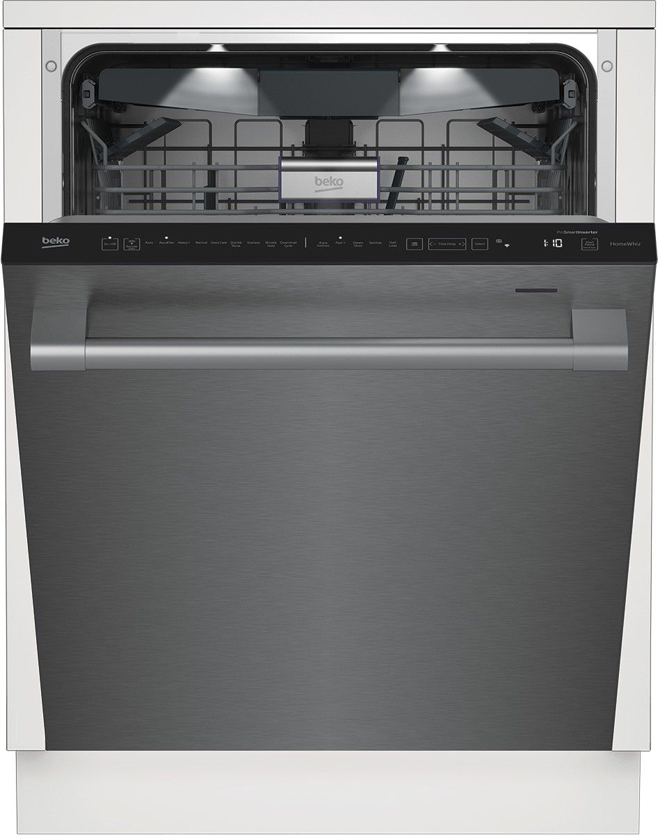 Cleaning up after every meal is a breeze with the intense water pressure and IonGuard odor-eliminating convenience of this Beko pro-handle Wi-Fi connected dishwasher. Load up your dishes on the adjustable, 3-position full-size upper rack and power clean with the sanitize, extra rinse, or SteamGloss functions. Check the red LED light to see when its running—it’s that quiet—and streamline your to-do list with the HomeWhiz smart device app to free up your time for the more important things.