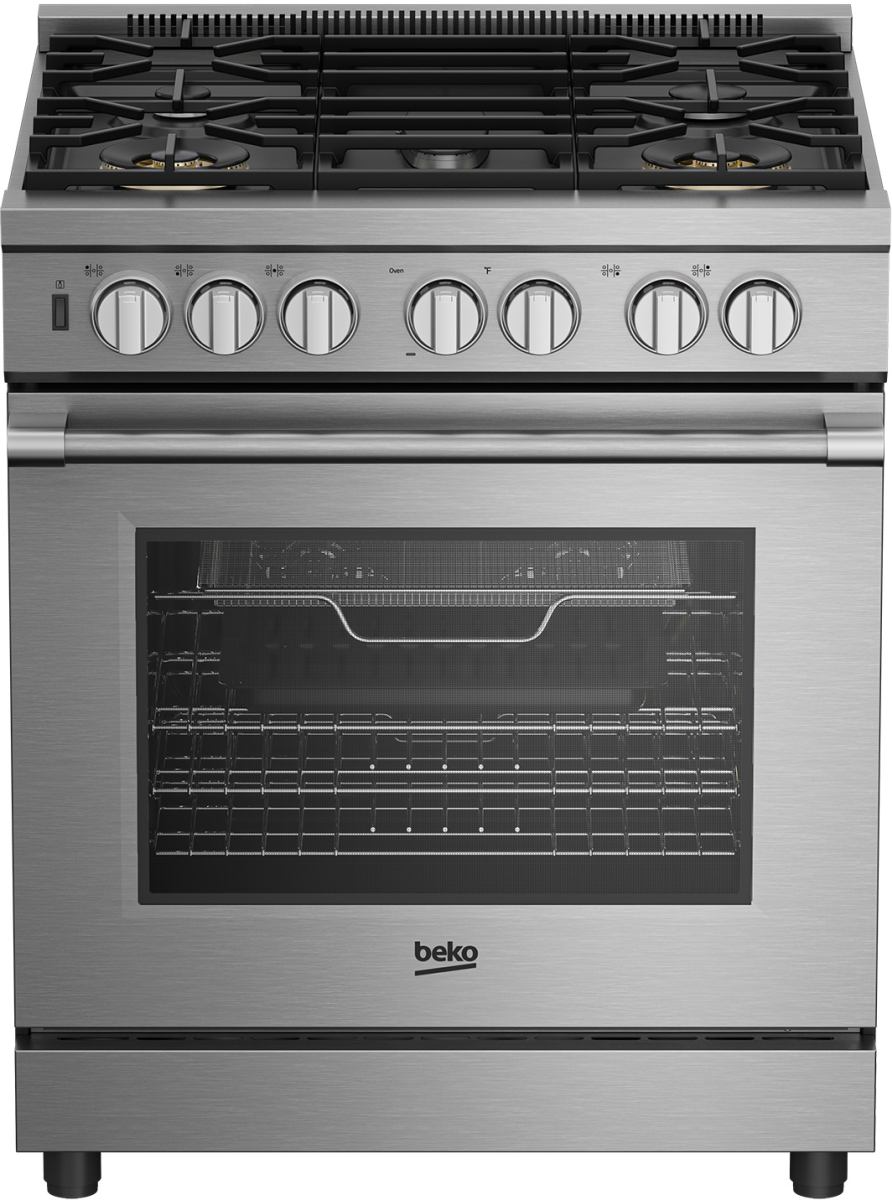Complete your home kitchen system with the Beko 30" Stainless Steel Pro Style Dual Fuel Range, featuring illuminated metal knob controls, Pyrolytic Self-Cleaning, and 5 convenient cooking functions.Read More